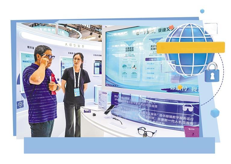 观众在云南昆明举行的2025年国家网络安全宣传周配套活动上体验智能眼镜。新华社记者 彭奕凯摄