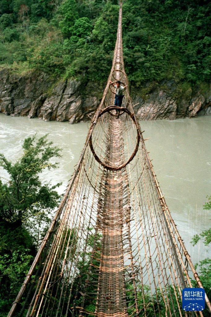 图为1983年拍摄的墨脱县的藤网桥。(1983年11月22日发)