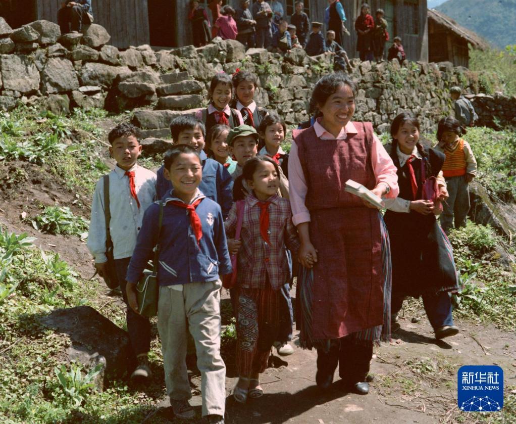 墨脱县一所小学的孩子们和他们的老师。(1983年11月22日发)