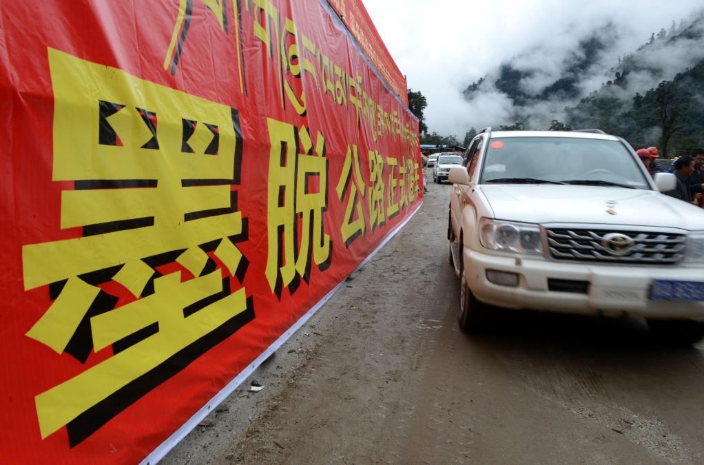2013年10月31日,墨脱公路正式通车,这标志着墨脱将正式摆脱“全国唯一不通公路县”的历史。这是车辆驶进墨脱。新华社记者 觉果 摄