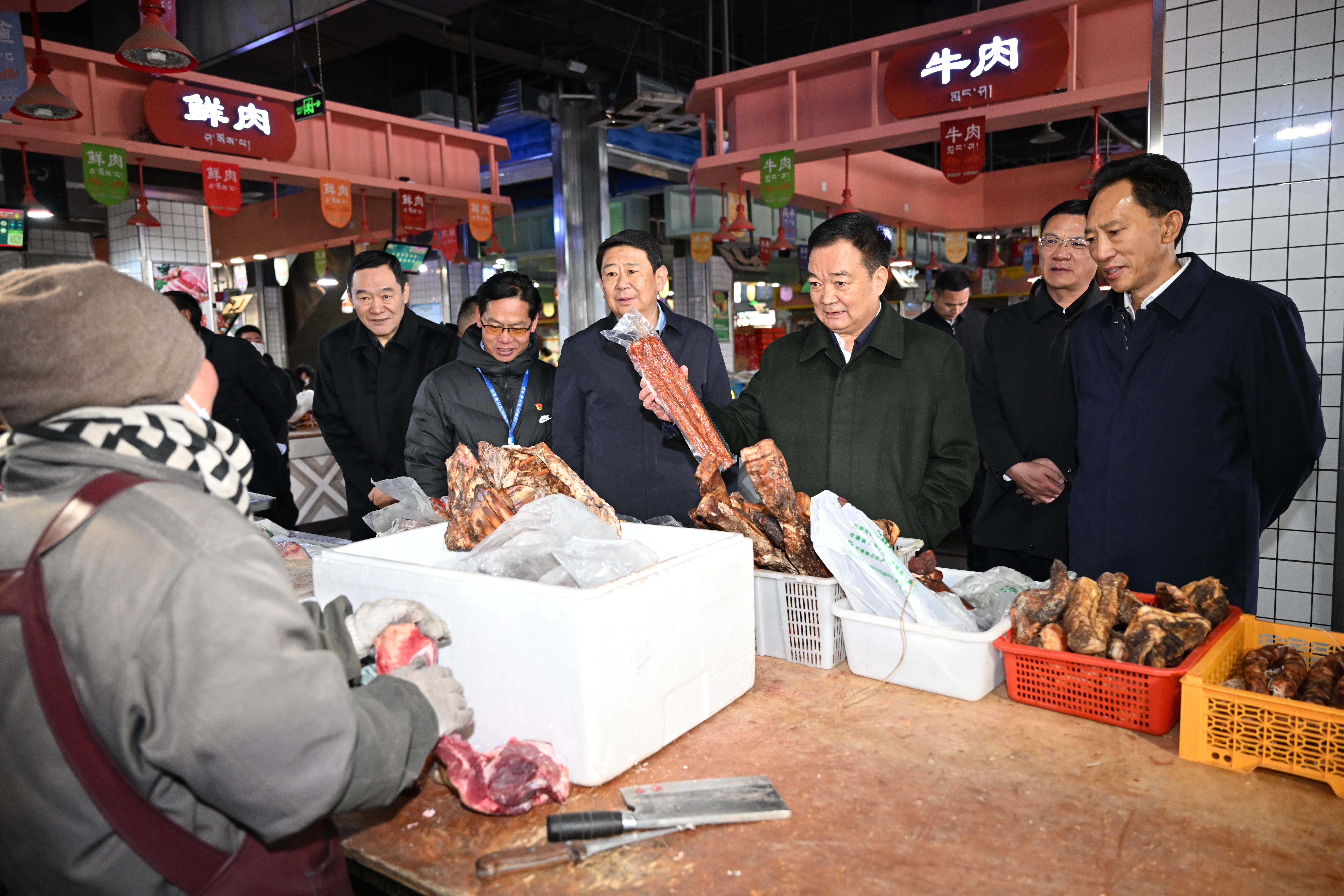 1月27日,自治区党委书记王君正在拉萨市检查春节、藏历新年节前市场供应保障等工作。这是王君正在八一农产品市场,详细询问商品价格、货源供应和本地特色货品等情况。记者 旦增西旦 摄