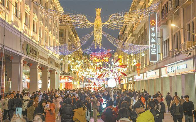 SM城市广场布置“灯影妙会·拱手相贺”主题美陈,烘托春节气氛。百年中山路化身“非遗博物馆”,“千年非遗秀”民俗快闪、两岸非遗数字化体验等活动轮番上演。沙坡尾推出活力快闪秀,小白鹭民间舞艺术中心用舞蹈点亮全场。中华城集聚喜茶Bake Lab蛋挞店、TACOTACO嗒呵嗒呵等大众餐饮新店,让新春“逛吃”选择更丰富。