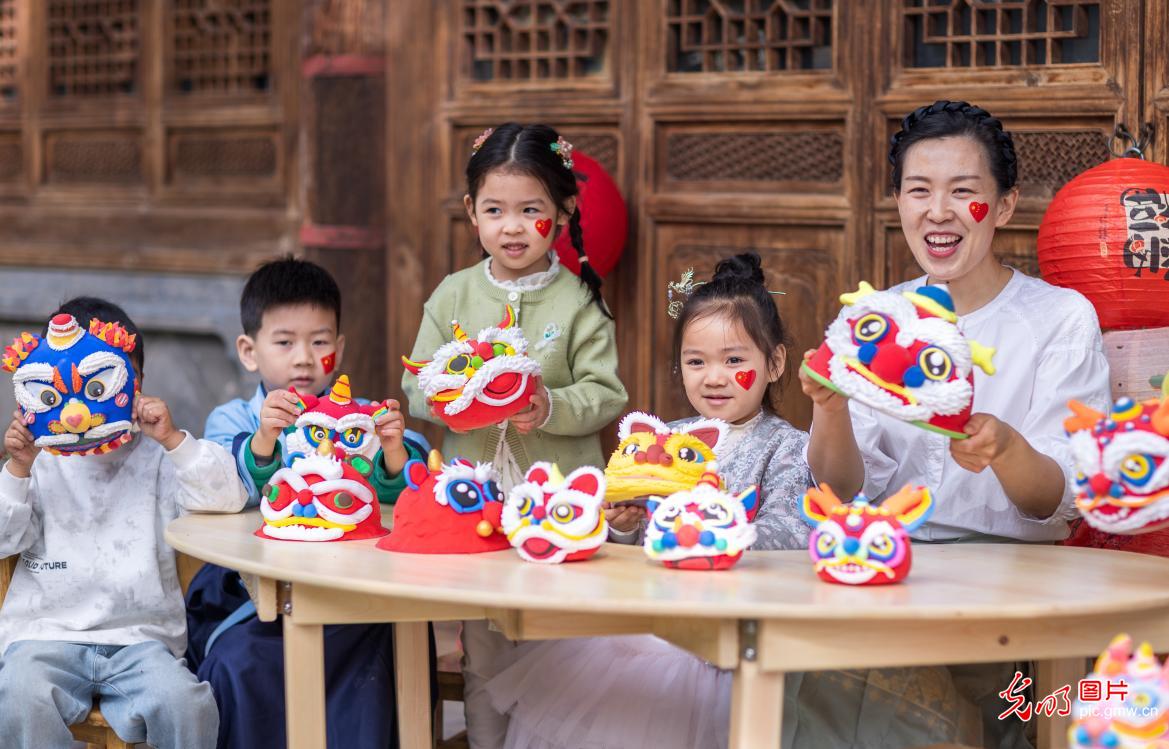 当日,甘肃省张掖市甘州区第一幼儿园通过组织小朋友开展制作粘土醒狮手作、绘制中秋兔灯、制作桂花酿等活动,迎接国庆节和中秋节的到来。(杨潇摄/光明图片)