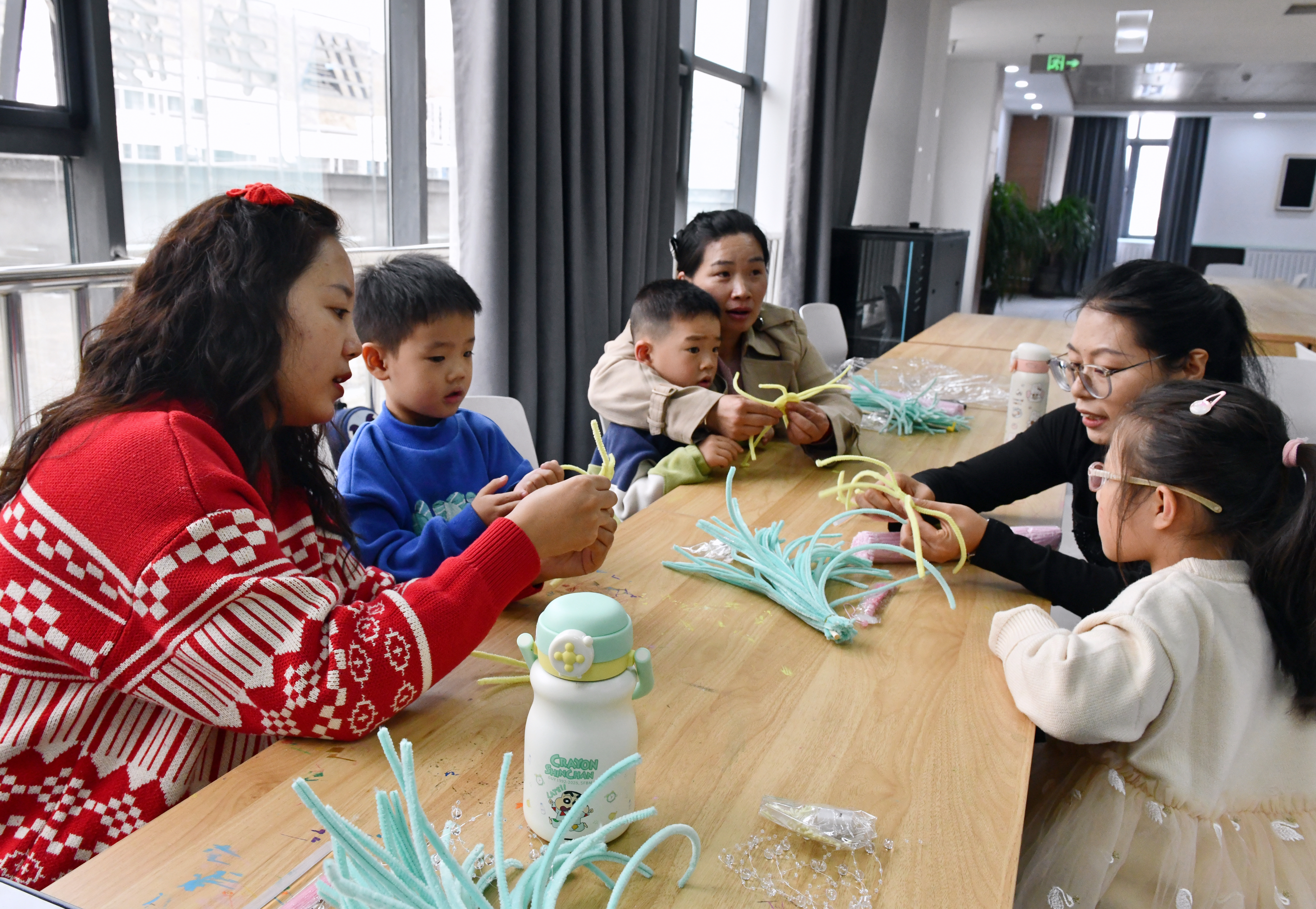 图为家长和小朋友们正在制作荷花灯。记者 旦增兰泽 摄