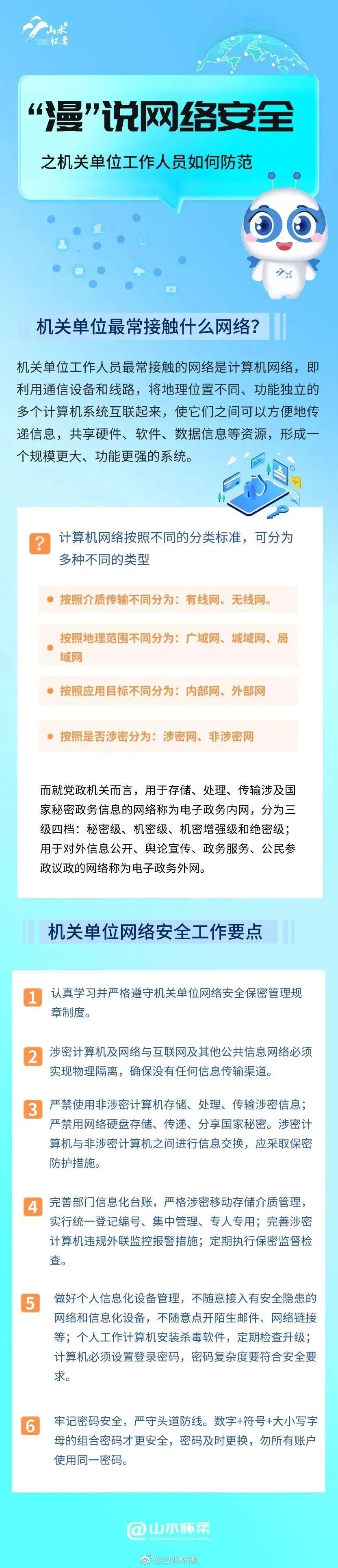 网络安全和保密防护是机关单位日常工作中不可忽视的重要问题,戳图了解机关单位工作人员如何做好网络安全防护。