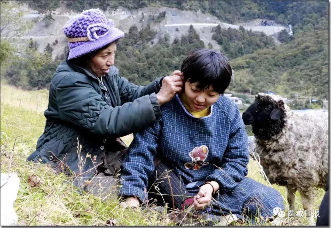 卓嘎与女儿放牧。(资料图片)