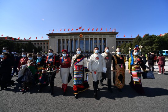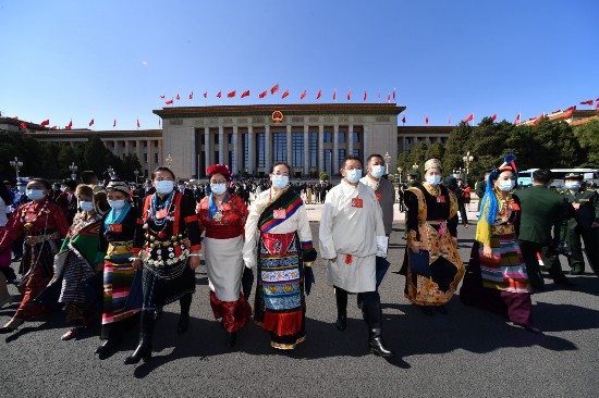 2022年10月16日,中国共产党第二十次全国代表大会胜利开幕。图为开幕会结束,西藏代表们走出会堂,难掩激动、信心满满。记者 旦增西旦 摄