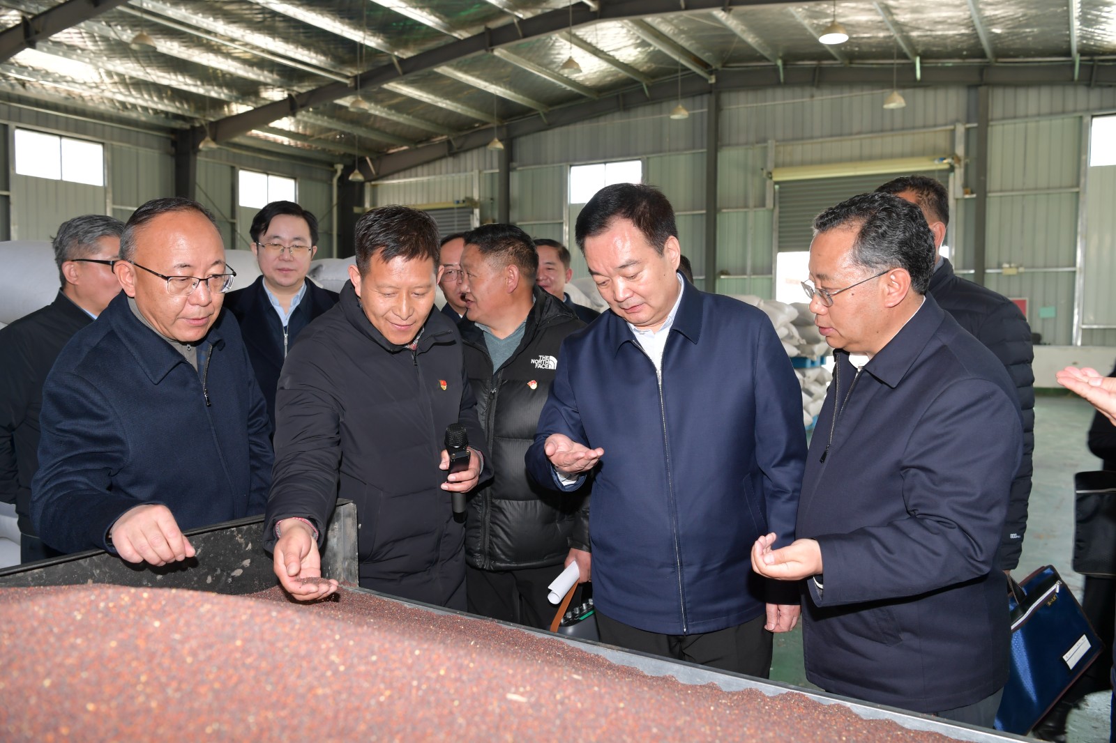 2月18日,自治区党委书记王君正来到拉萨市墨竹工卡县调研县域经济发展、乡村振兴等工作。这是王君正走进墨竹净土公司生产车间,认真察看西藏墨竹小菜籽油生产线。记者 旦增西旦 摄