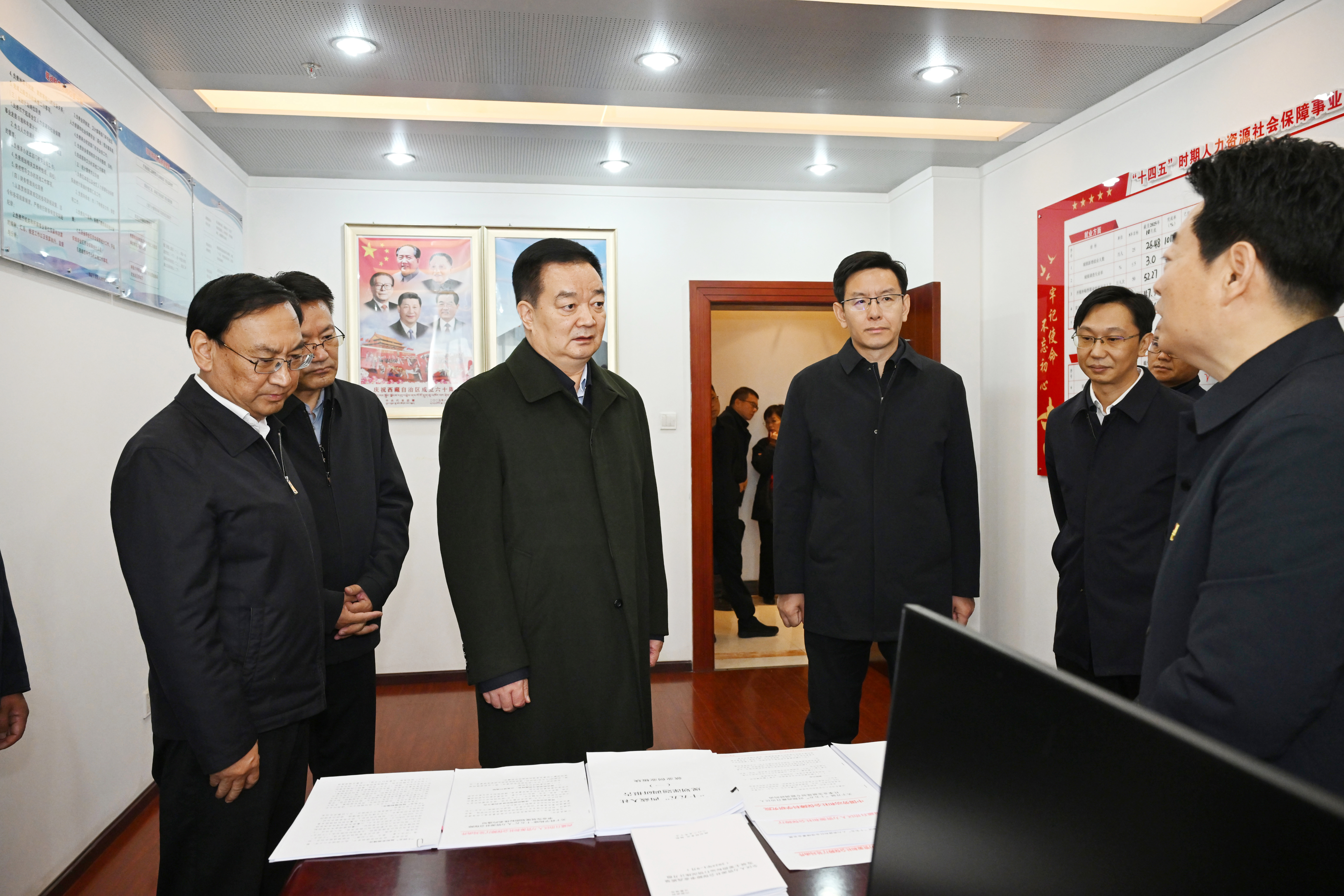 11月17日,自治区党委书记王君正在自治区人力资源和社会保障厅调研。这是王君正在规划财务处向干部职工宣讲党的二十届四中全会精神,详细了解相关工作开展情况。记者 李洲 摄