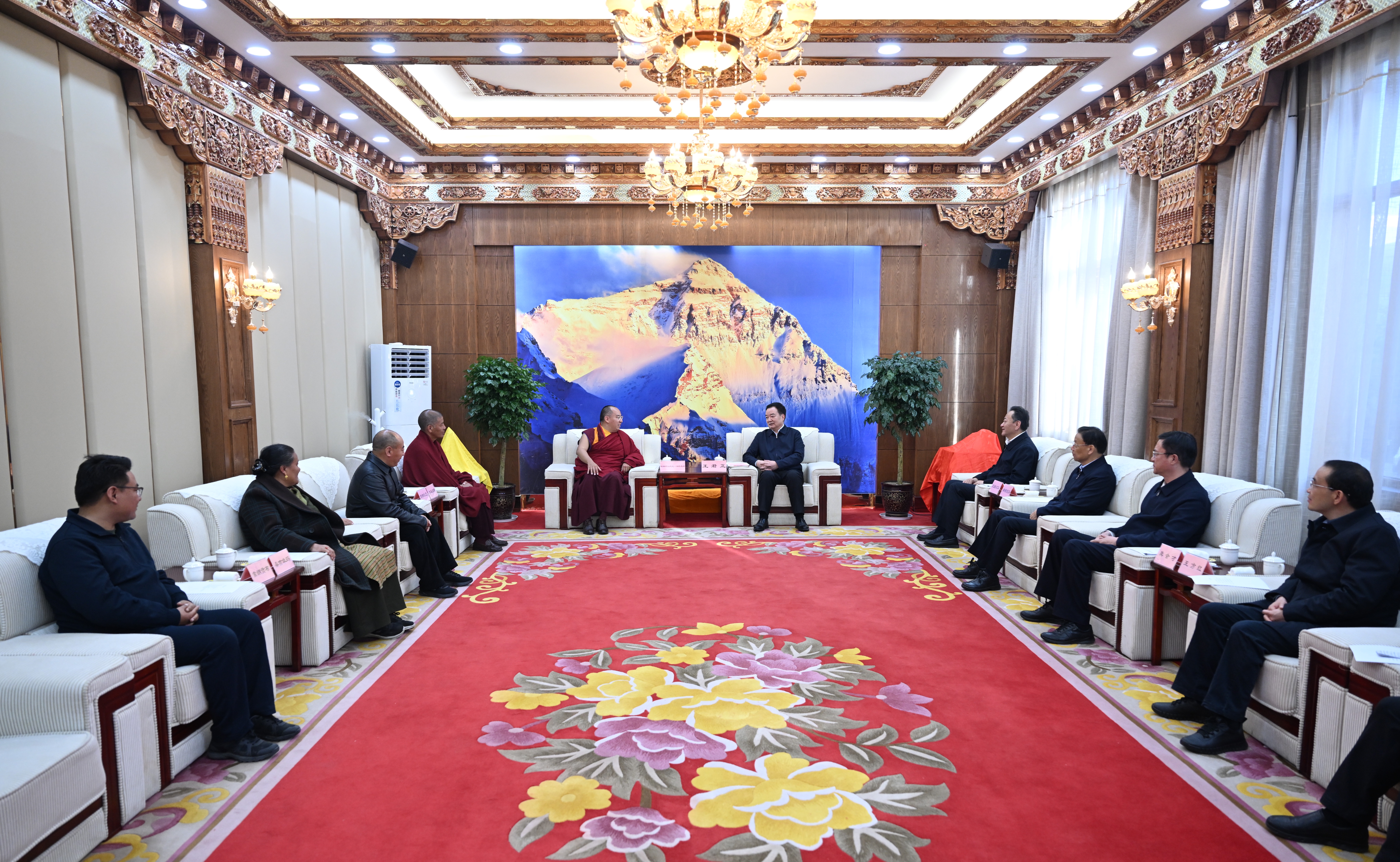 近日,自治区党委书记王君正在日喀则市调研宗教工作。调研中,王君正会见了班禅额尔德尼·确吉杰布。记者 旦增西旦 摄