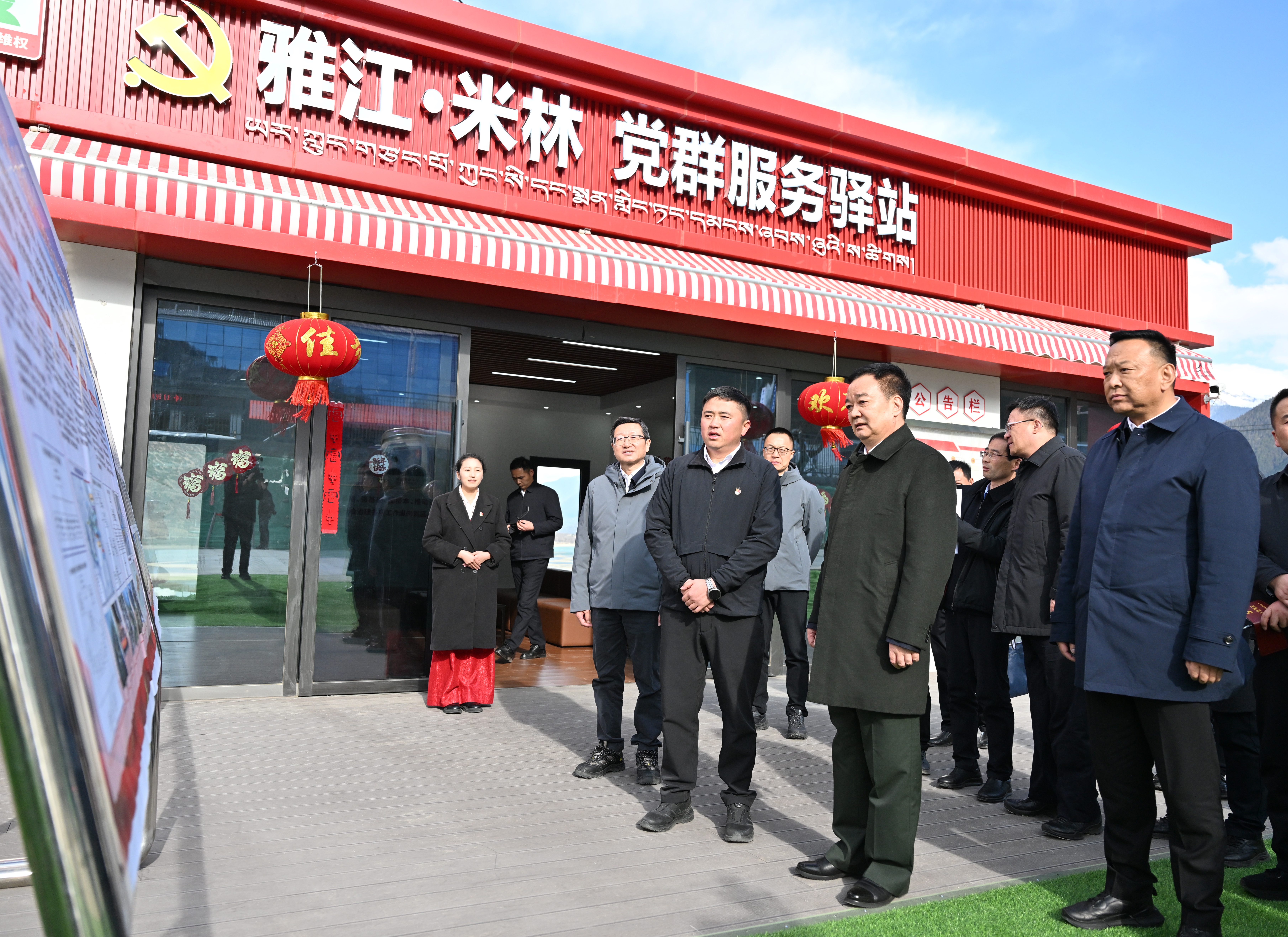 春节、藏历新年期间,2月18日,自治区党委书记王君正深入米林市重大项目建设现场、党群服务驿站、边境派出所,看望慰问坚守一线的基层干部和一线职工,向节日期间坚守岗位的各条战线的广大干部职工致以新年祝福。这是王君正来到米林党群服务驿站,听取以党建服务引领国家重大工程建设情况。记者 旦增西旦 摄