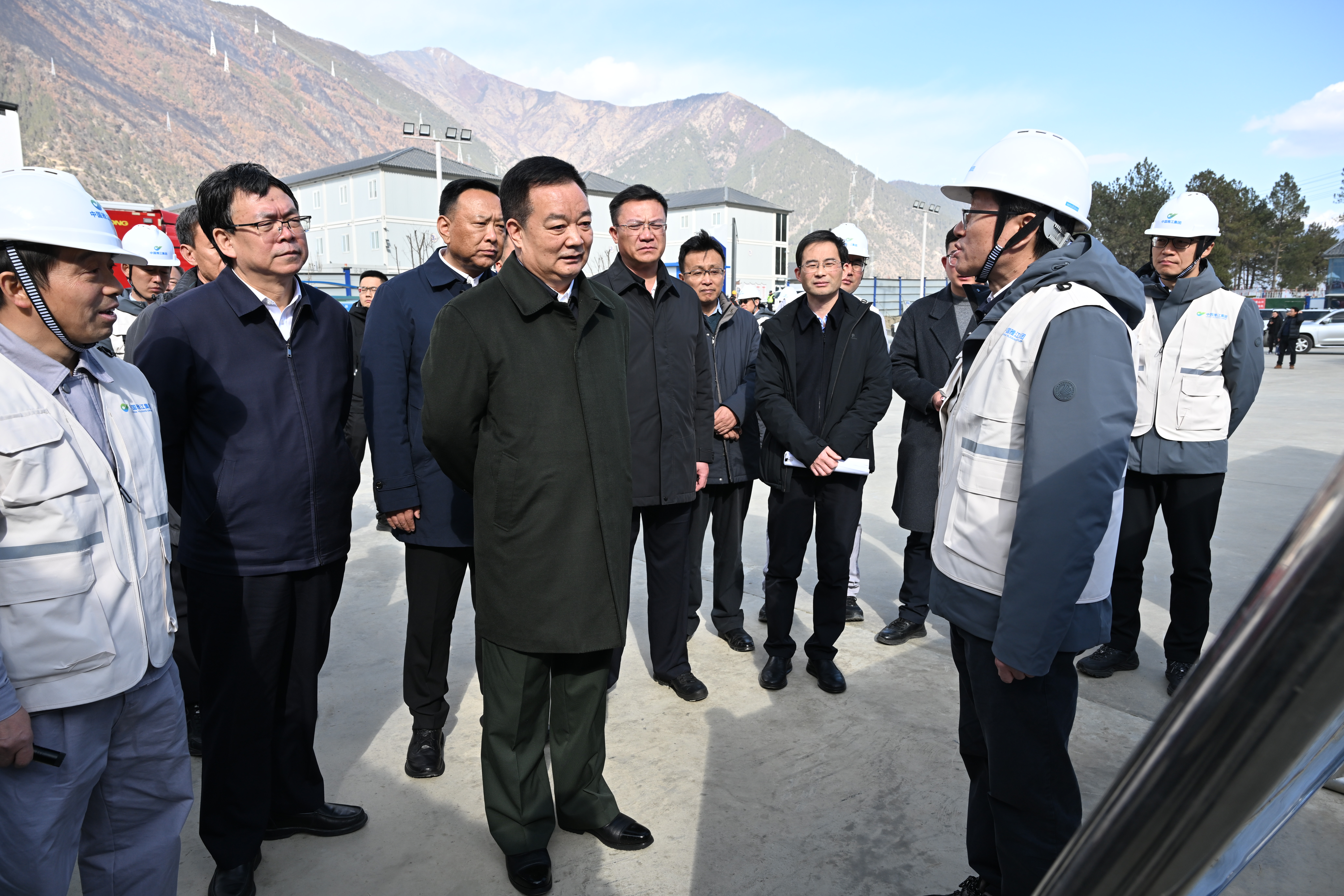 春节、藏历新年期间,2月18日,自治区党委书记王君正深入米林市重大项目建设现场、党群服务驿站、边境派出所,看望慰问坚守一线的基层干部和一线职工,向节日期间坚守岗位的各条战线的广大干部职工致以新年祝福。这是王君正实地察看重大项目建设进展情况,亲切看望慰问一线建设者。记者 旦增西旦 摄