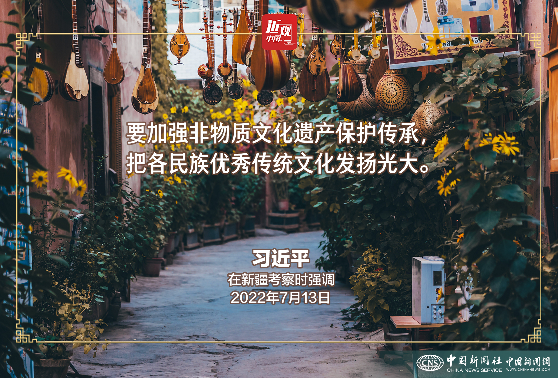 习近平指出,中华文明博大精深、源远流长,是由各民族优秀文化百川汇流而成。要加强中华民族共同体历史、中华民族多元一体格局的研究,充分挖掘和有效运用新疆各民族交往的历史事实、考古实物、文化遗存,讲清楚新疆自古以来就是我国不可分割的一部分和多民族聚居地区,新疆各民族是中华民族大家庭血脉相连、命运与共的重要成员。要加强非物质文化遗产保护传承,把各民族优秀传统文化发扬光大。