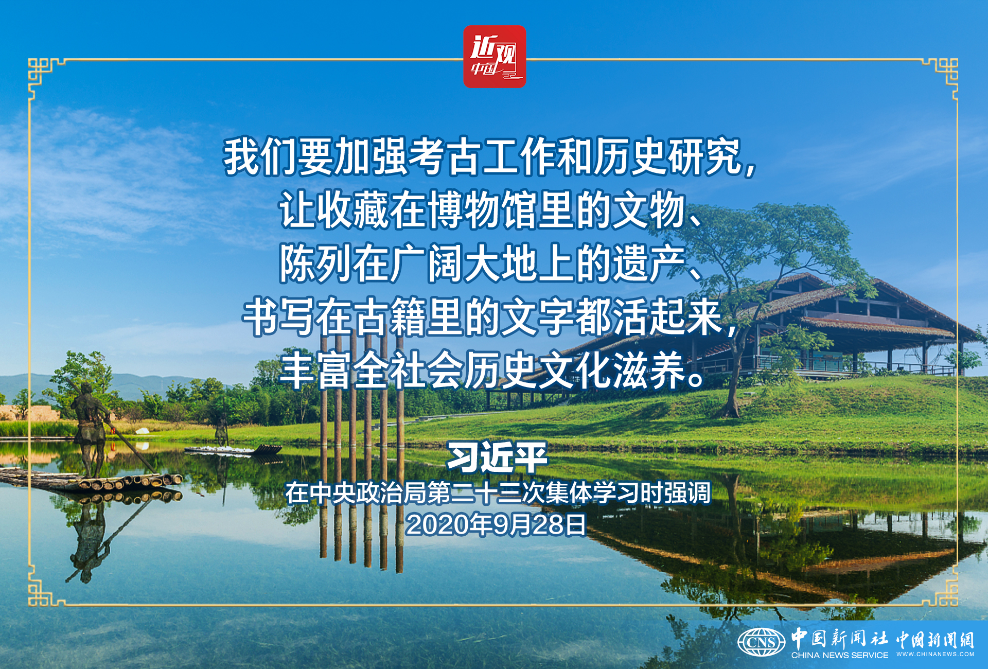 2020年9月28日,中共中央政治局就我国考古最新发现及其意义为题举行第二十三次集体学习。中共中央总书记习近平在主持学习时发表了讲话。