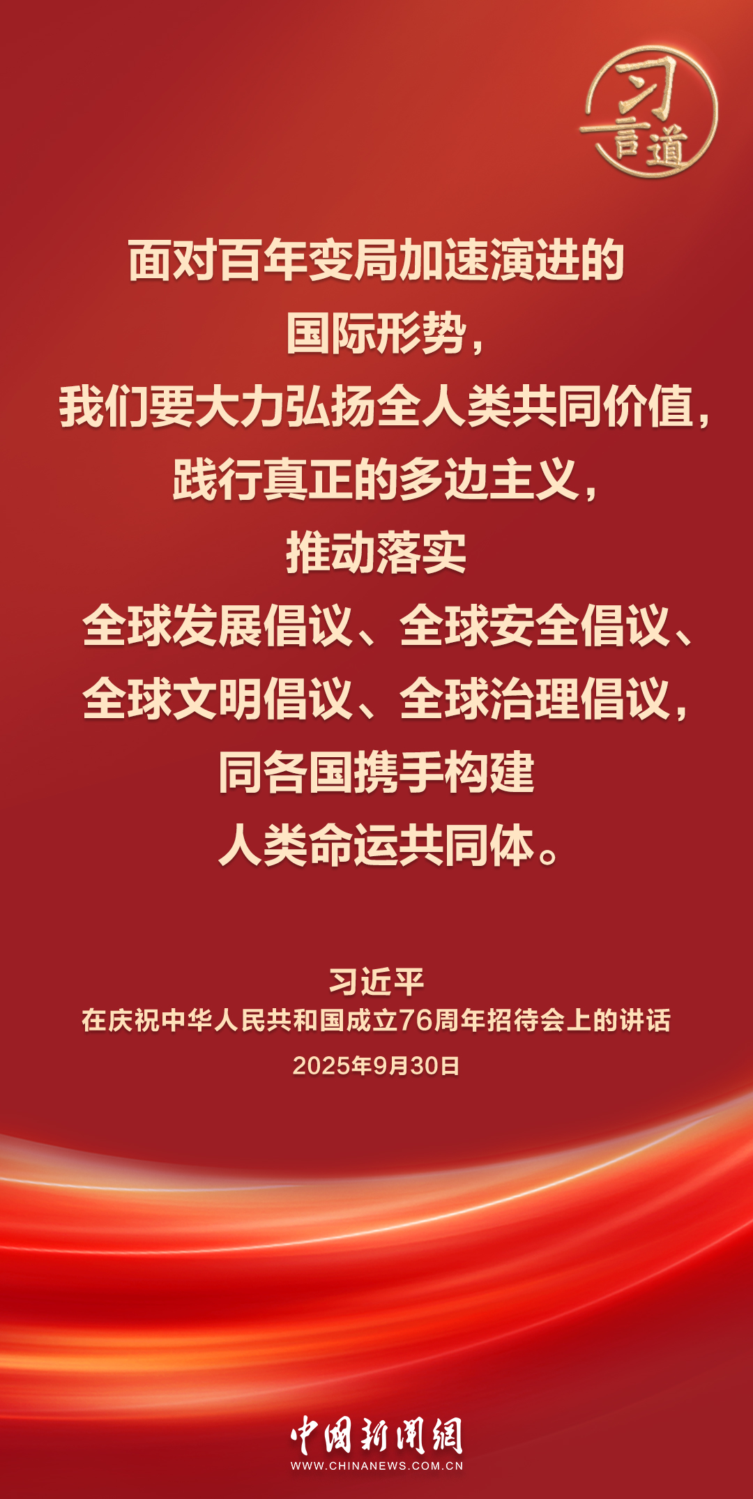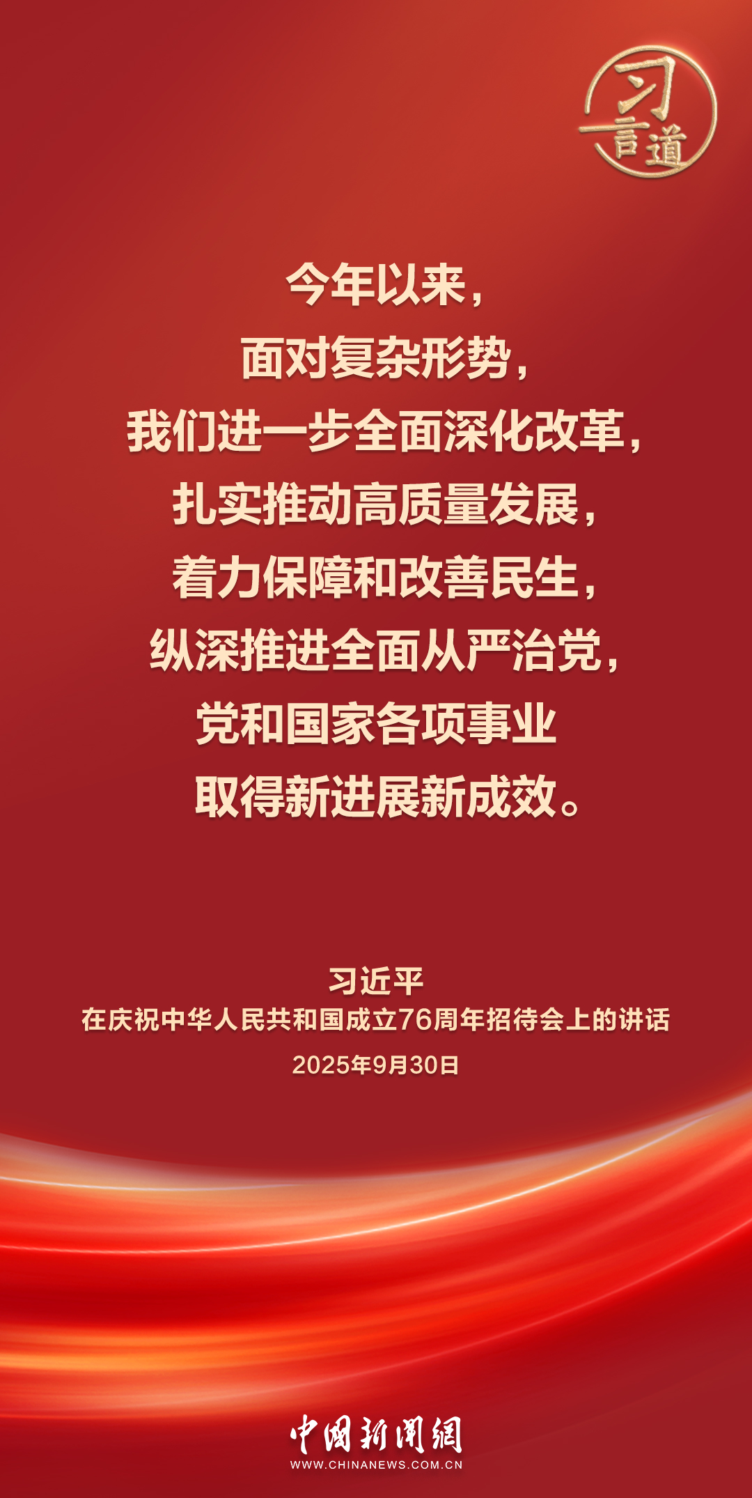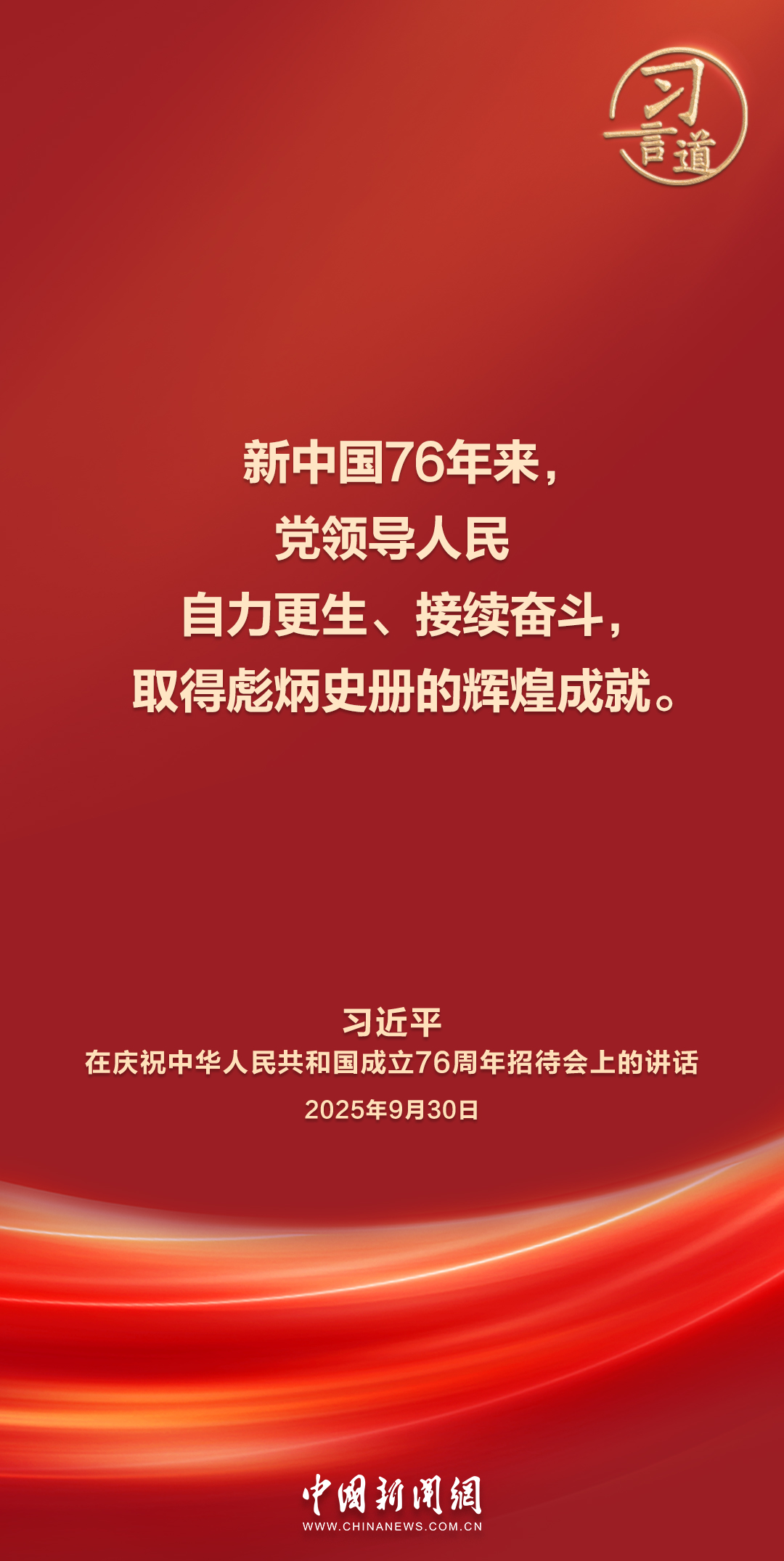 9月30日,庆祝中华人民共和国成立76周年招待会在人民大会堂举行。中共中央总书记、国家主席、中央军委主席习近平出席招待会并发表重要讲话。习近平指出——