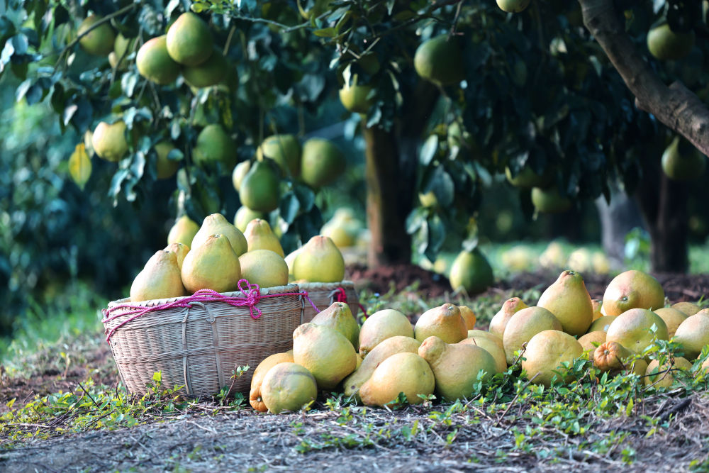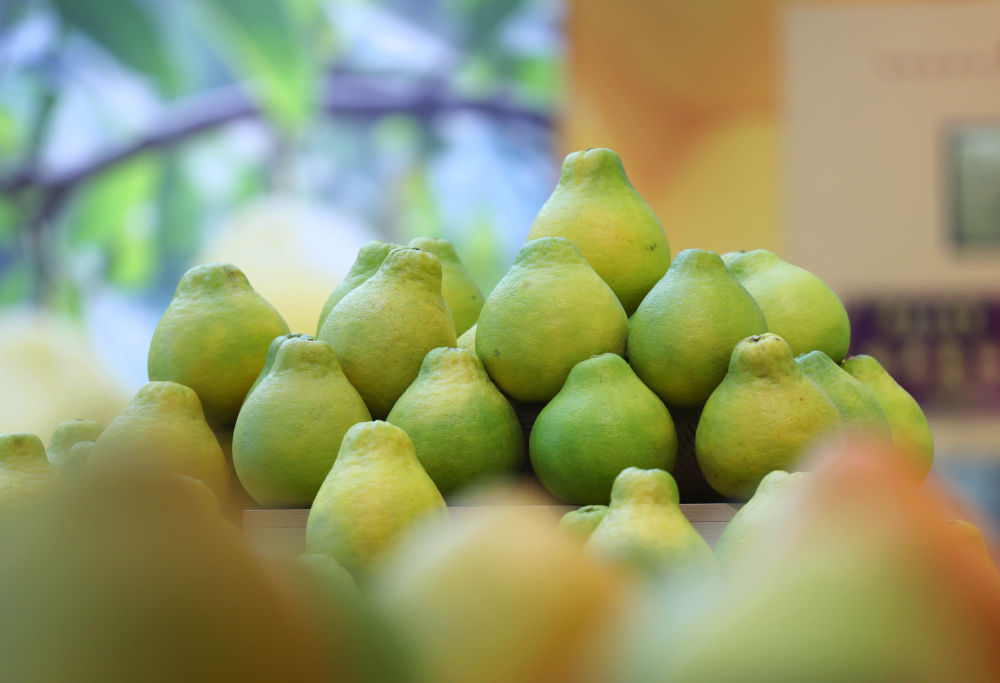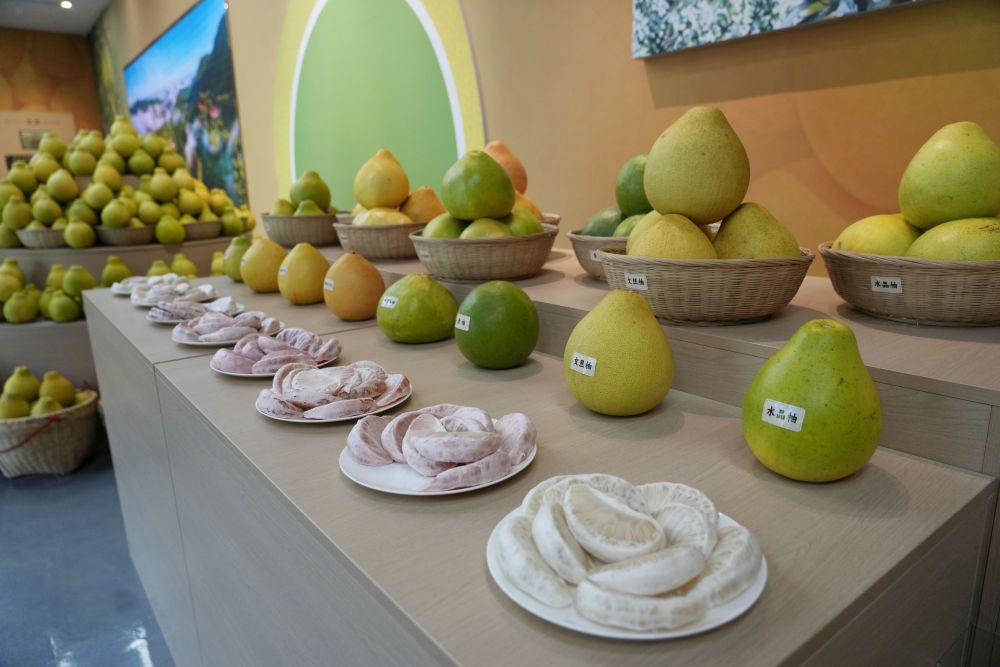 2025年6月12日,工作人员在广东省梅州市梅县区农业科学研究所检查柚子生长情况。