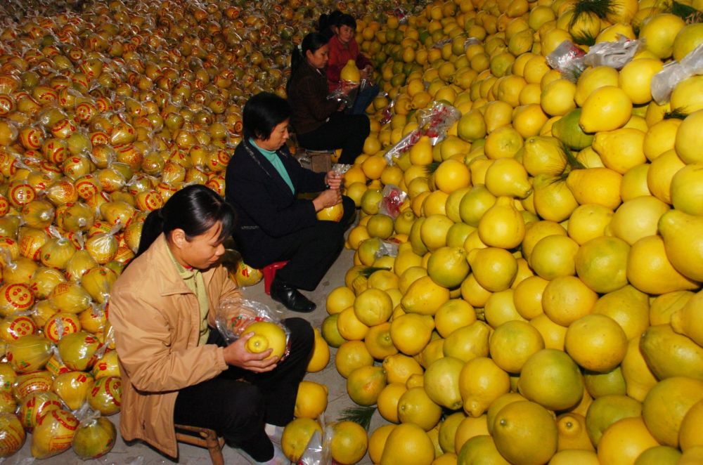 2012年12月29日,游客在广东省梅州市选购柚子。