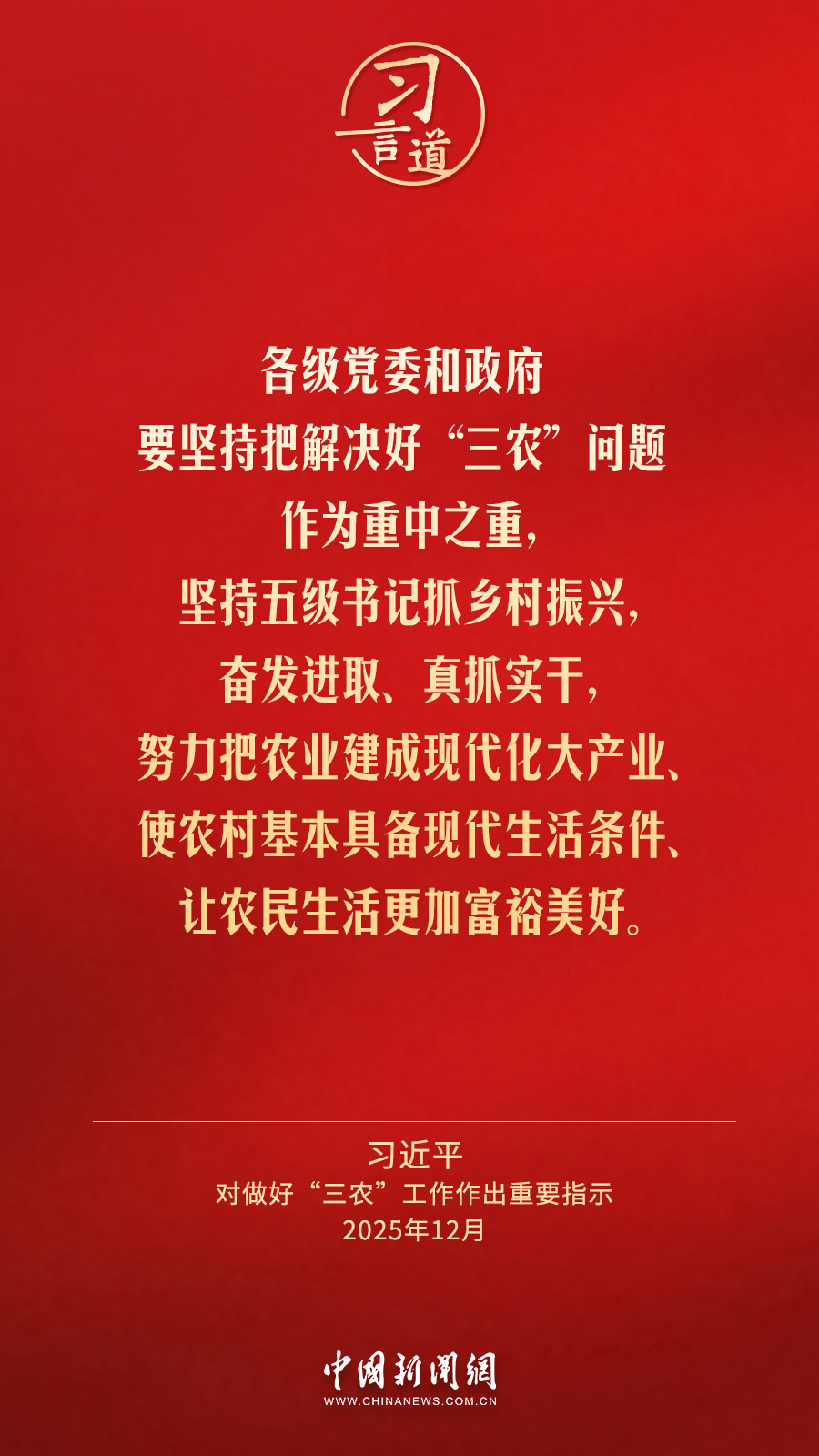 中央农村工作会议29日至30日在北京召开。中共中央总书记、国家主席、中央军委主席习近平对做好“三农”工作作出重要指示。习近平指出——