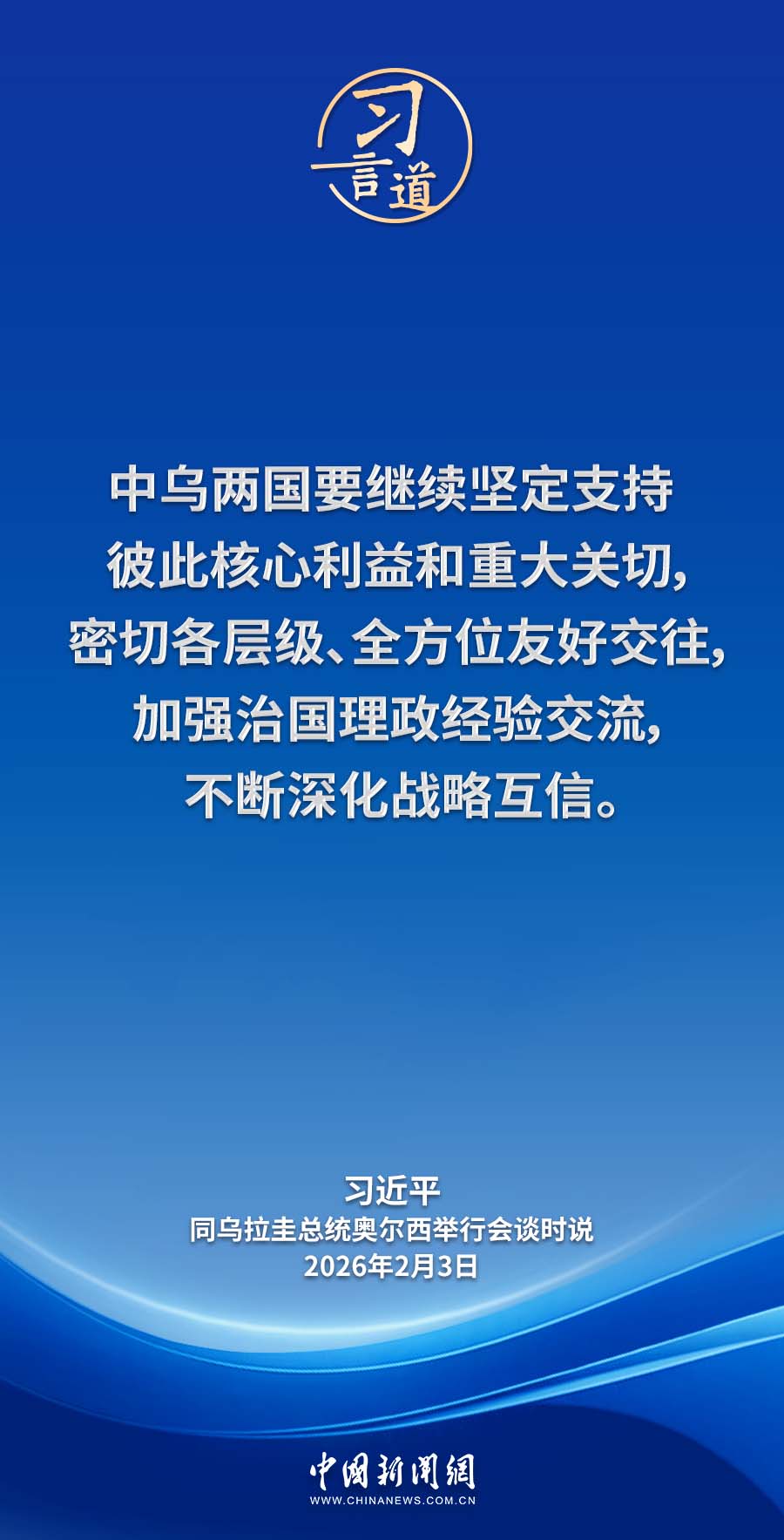 2月3日,国家主席习近平在北京人民大会堂同来华进行国事访问的乌拉圭总统奥尔西举行会谈。习近平指出——