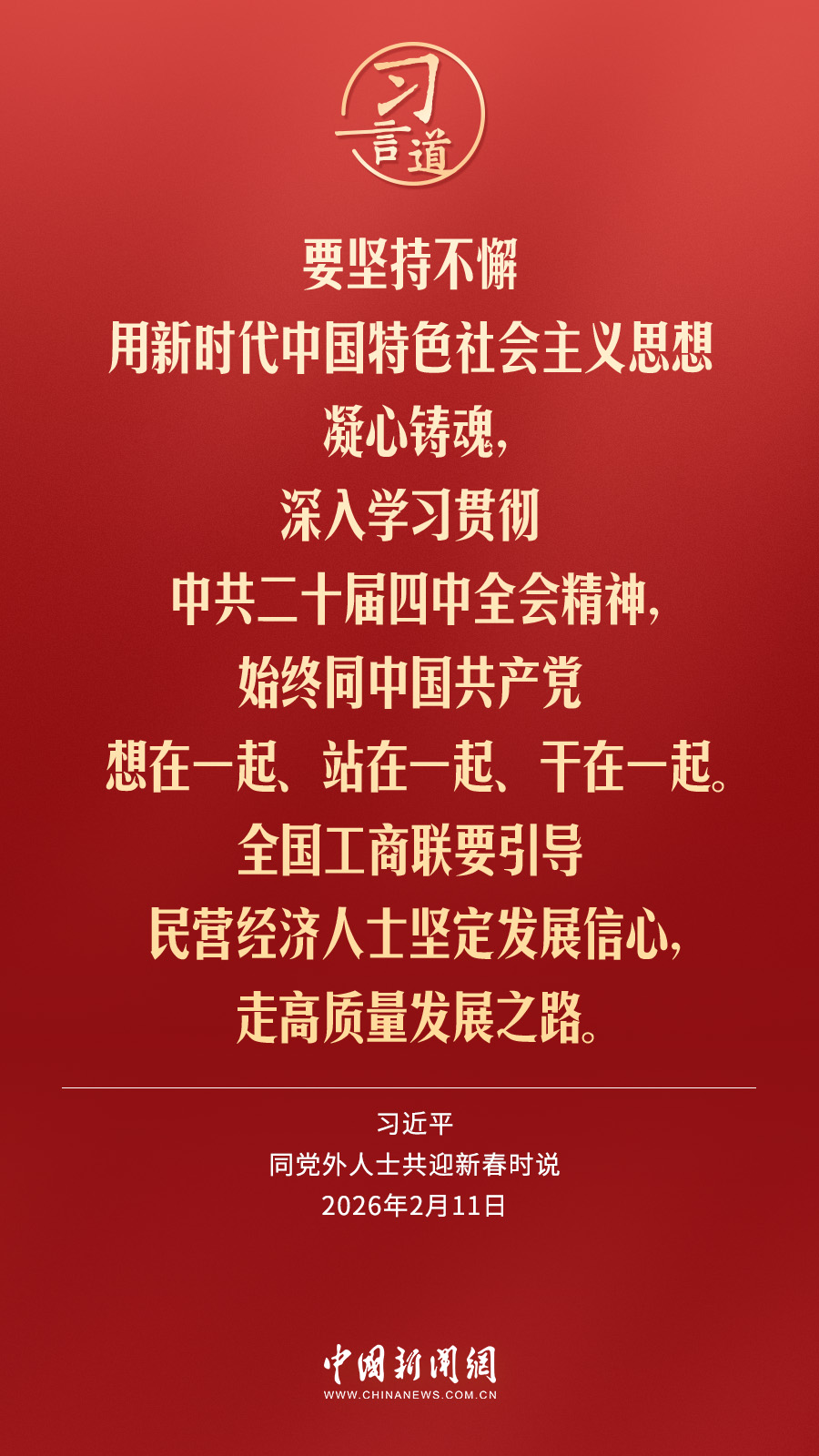 2月11日,在中华民族传统节日丙午马年春节即将到来之际,中共中央总书记、国家主席、中央军委主席习近平在人民大会堂同各民主党派中央、全国工商联负责人和无党派人士代表欢聚一堂,共迎新春。他指出——