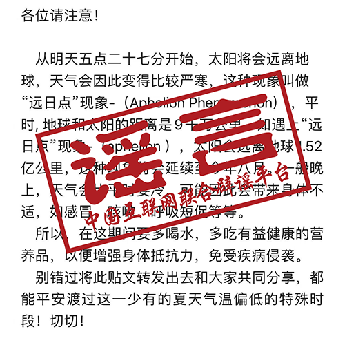 网传说法称,“太阳将会远离地球,天气会因此变得比较严寒”。