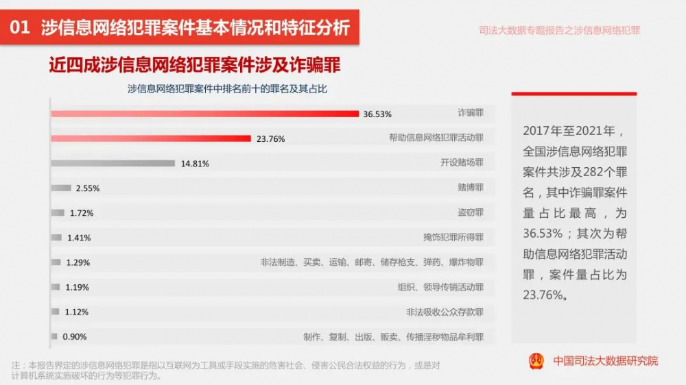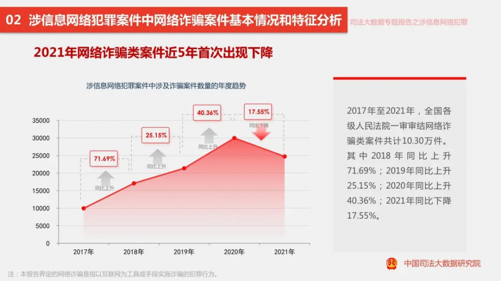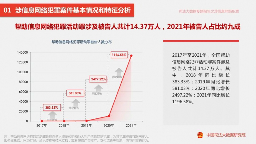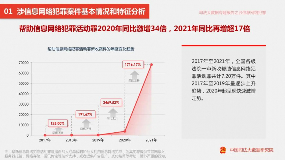 8月1日,中国司法大数据研究院正式对外发布《涉信息网络犯罪特点和趋势(2017.1-2021.12)司法大数据专题报告》(以下简称《报告》)。