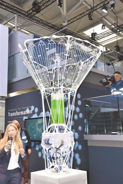 在2022汉诺威工业博览会上,Festo公司展示用于制造藻类产品的自动化生物反应器原型机。图片来源:本报记者 李山摄