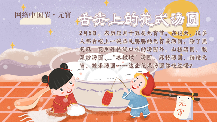 2月5日,农历正月十五是元宵节。在这天,很多人都会吃上一碗热气腾腾的元宵或汤圆。除了黑芝麻、花生等传统口味的汤圆外,山楂汤圆、酸菜炒汤圆、“冰墩墩”汤圆、麻将汤圆、糖糍元宵、辣条汤圆……这些花式汤圆你吃过吗?