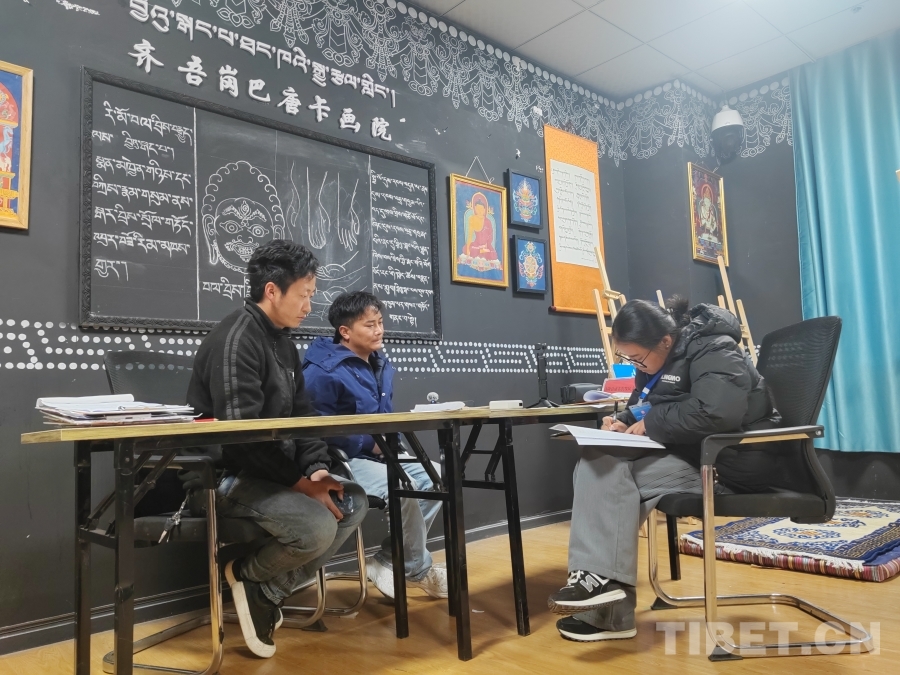 图为回访记录齐吾岗巴唐卡画院的非遗传承情况