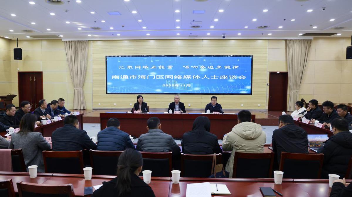 近日,南通市海门区召开“汇聚网络正能量 唱响奋进主旋律”网络媒体人士座谈会。南通市委宣传部副部长、网信办主任俞雷,海门区委副书记、区长陈威涛参加会议并讲话。