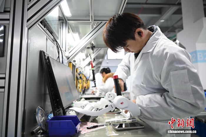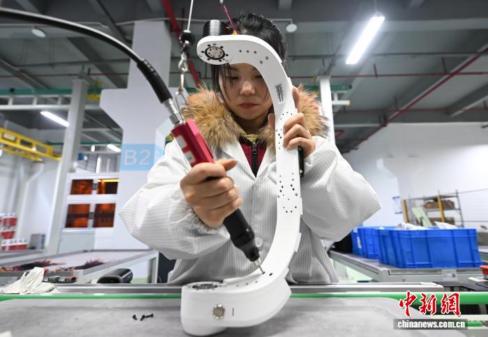 1月9日,工作人员在产线上组装AI外骨骼机器人。中新社记者 王刚 摄