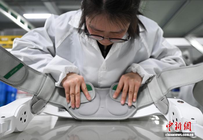 1月9日,工作人员组装AI外骨骼机器人。中新社记者 王刚 摄