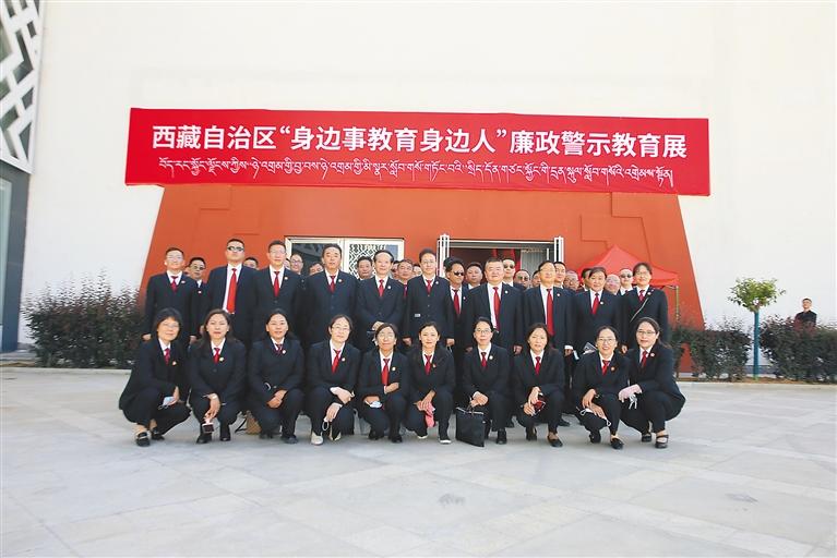 图为2022年7月8日,自治区高级人民法院干警参观西藏自治区“身边事教育身边人”廉政警示教育展合影。