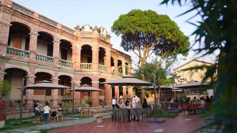 位于泉州西街的宋文圃宅,始建于1912年,入选福建省第一批城市优秀近现代建筑名录。如今,这座百年古厝摇身一变,成为了艺术空间,吸引众多游客前来游览、消费。新华网发(林楷煜 摄)