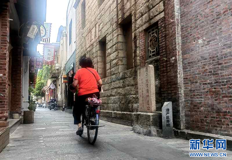 一位市民骑自行车在泉州古城的小巷里穿梭。泉州古城整体被纳入世界遗产缓冲区管理,老百姓生活在世遗古城里,最大程度留住传统韵味,打造“见人见物见生活,留形留人留乡愁”的街巷文化活样本。新华网 程立葳 摄