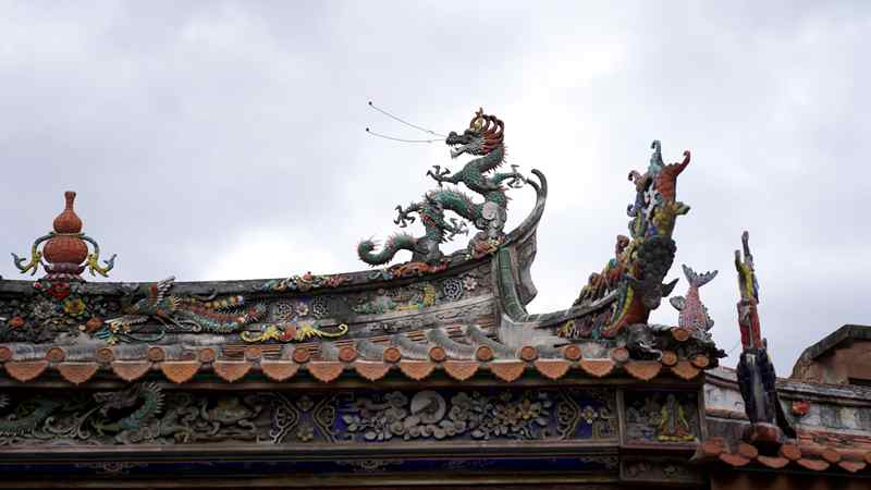 抬头看,厝顶有戏出,泉州的精彩就在屋顶上。许多寺庙古厝的屋顶上,或是活灵活现的雕龙画凤,或是栩栩如生的吉祥瑞兽,或是天兵天将,又或是八仙过海。新华网发(林楷煜 摄)