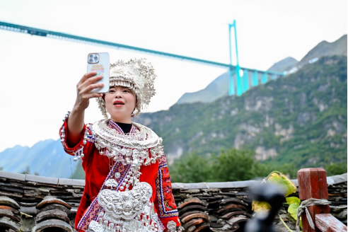 横跨云端的钢铁巨龙与桥下古朴的布依村落,正展开一场关于时代变迁的对话。
