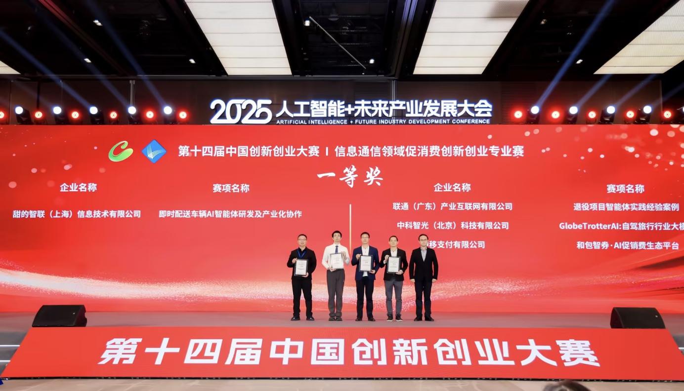 在推动自身技术落地的同时,广东联通也积极参与并助力产业创新生态的培育。在同期举行的第十四届中国创新创业大赛信息通信领域专业赛颁奖仪式上,由联通(广东)产业互联网有限公司自主研发的“基于元景大模型的天融·退役智能体”项目荣获总决赛一等奖。该项目聚焦AI赋能机器人消费场景,通过多模态理解、个性化推荐与智能交互等核心技术,为退役群体提供精准、便捷的政务服务和信息支持,有效助力退役、政务等行业提升服务体验与业务办理效率。