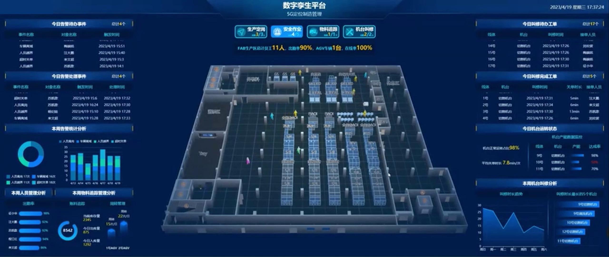 中国联通与三一强强联合,打造基于5G+UWB融合定位系统,实现厂区人员、车辆、物资、生产的可视化管理,并积极探索AI智能下料等场景应用,助力“钢铁巨臂”的精准生产。
