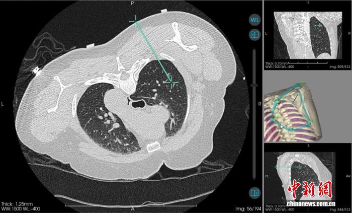 当天,该院心胸外科主任阳诺带领消融团队开展手术。他介绍,在术前,穿刺手术机器人系统基于患者CT影像,能自动构建详细的肺部3D立体模型,清晰呈现结节与周围血管、气管等重要组织的位置关系。
