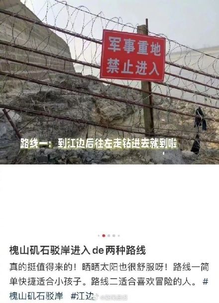 近期,在小红书等社交媒体上,有博主分享了槐山矶石驳岸的拍照攻略。令人震惊的是,其无视“军事重地,禁止进入”的警告标识,不仅进行拍照,还引导网友翻越围栏,声称该方法“简单快捷”。分享旅游攻略、欣赏美景本是人之常情,但该博主对国家安全的漠视却令人担忧。 军事重地涉及国家机密,此前,国家安全部已多次发布提醒,将国家军事信息扩散至互联网,被网络上别有用心之人利用,将对国家军事安全造成严重危害。根据《中华人民共和国军事设施保护法》,中华人民共和国的组织和公民都有保护军事设施的义务。任何扰乱军事禁区、军事管理区管理秩序和危害军事设施安全的行为都将受到法律严惩。同时提醒广大网友,切勿盲目跟风,尊重军事禁区规定,严格遵守法律法规要求,共同筑牢国家安全的基石。