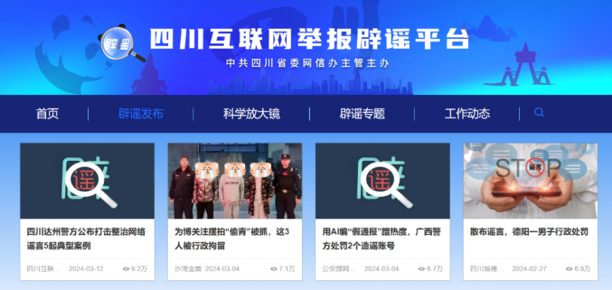 “四川互联网举报辟谣平台”网站截图