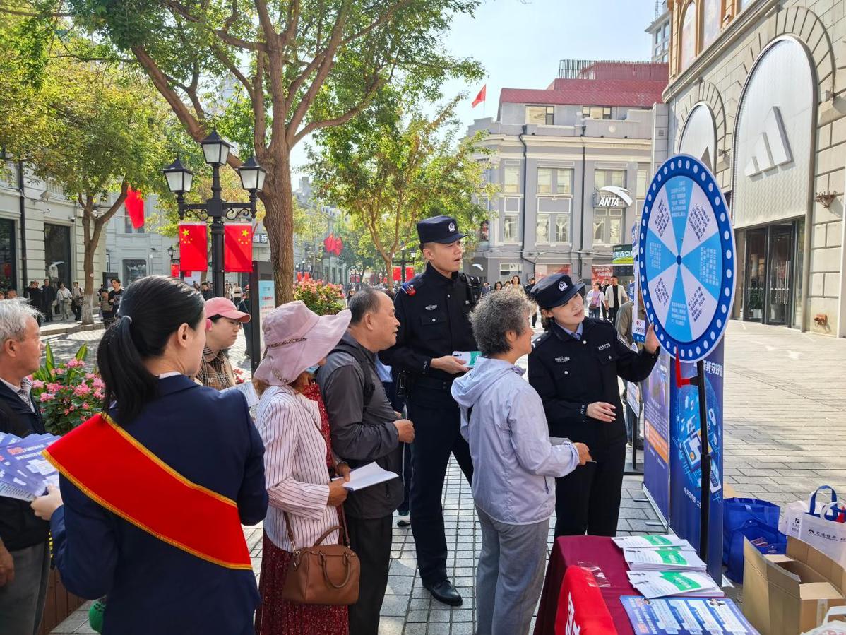 在中央大街,反诈中心联合交通银行友谊支行,通过悬挂醒目宣传横幅、派发图文并茂的宣传资料,向过往群众直观普及电信网络诈骗的常见手段与防范要点。现场设置的“反诈大转盘答题”环节,以趣味互动形式吸引众多游客、市民参与,大家在轻松答题赢取精美奖品的过程中,快速掌握实用反诈知识,实现“娱乐式”学习。