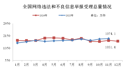 2025年11月全国受理网络违法和不良信息举报1974.1万件
