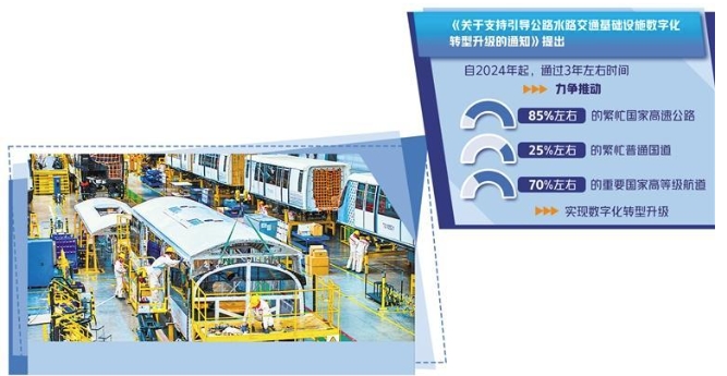 财政部、交通运输部今年联合印发的《关于支持引导公路水路交通基础设施数字化转型升级的通知》提出,推动基础设施智慧扩容,围绕公共服务升级,推动大数据、物联网、人工智能、北斗导航等新技术与交通基础设施深度融合。“要推动交通科技高水平自立自强,开展重大科研攻关,集中攻克智能建造、智能航运等领域的‘卡脖子’技术,提升基础设施建管养技术水平,构建更安全、更耐久、更智能的综合立体交通网络。”刘鹏飞说。