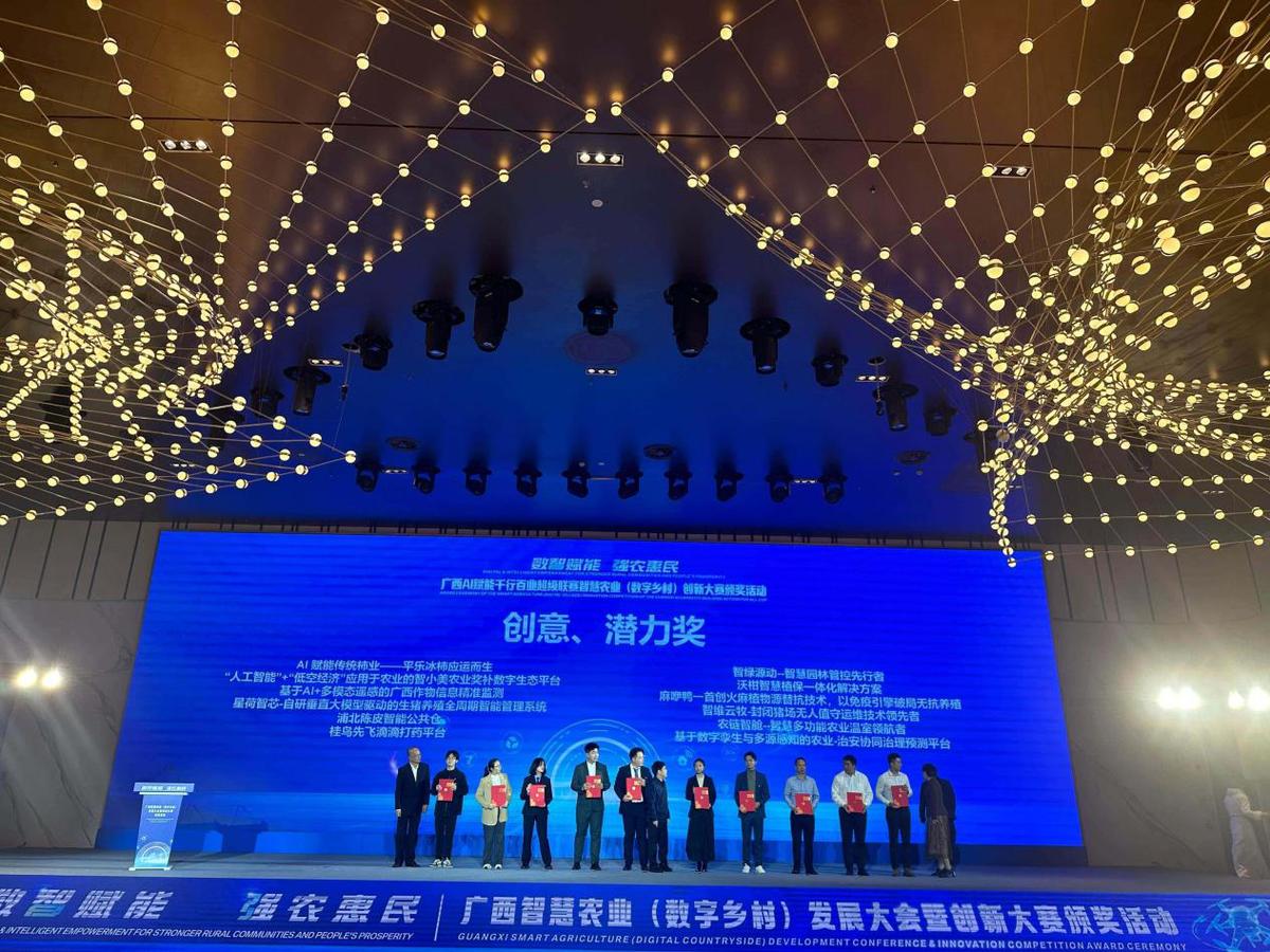 11月5日,广西智慧农业(数字乡村)发展大会暨创新大赛颁奖活动在南宁举行。本次活动由自治区农业农村厅主办,以“智慧赋能农业,数字点亮乡村”为主题,农业农村部领导、广西壮族自治区政府领导以及院士专家、企业代表、获奖团队等约400名嘉宾代表齐聚一堂,共同探讨智慧农业发展前沿趋势,展示数字乡村建设成果。