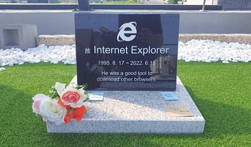 据路透社报道,韩国一家咖啡店在房顶开辟了一块特殊的墓地,“安葬”曾经独霸市场多年的浏览器IE,墓碑上写着“他是下载其他浏览器的好工具”。