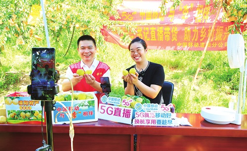 近来,在广西灌阳县文市镇马莲村优质水果种植基地,一个个硕大的奈李、黄金李、蜂糖李挂满枝头。为了帮助当地村民拓展农产品销售新渠道,中国移动广西桂林分公司大力推进乡村5G新基建,为直播带货提供网络支撑,助力农产品搭上电商“快车”。(作者:徐先丽 申蓓/摄影报道)