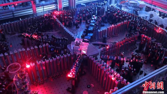 中国科学技术大学的研究团队与合作者构建成的76个光子的量子计算原型机“九章”。