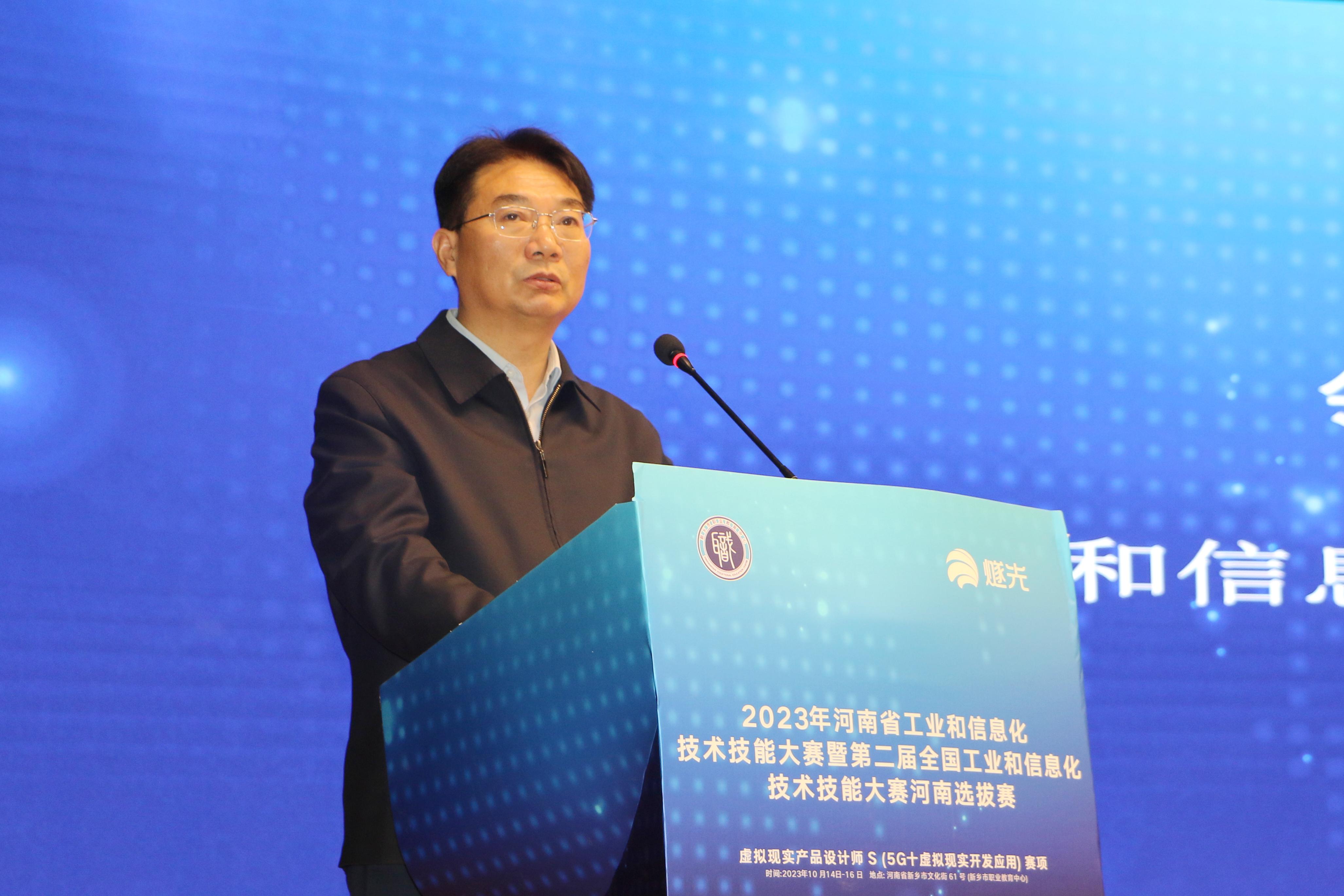 10月14—16日,2023年河南省工业和信息化技术技能大赛暨第二届全国工业和信息化技术技能大赛“5G+虚拟现实技术开发应用赛项河南选拔赛”在新乡举行,大赛由省工业和信息化厅、人力资源和社会保障厅、教育厅、总工会和共青团河南省委员会主办,新乡市工业和信息化局、新乡市教育局、新乡市职业教育中心等单位承办。省工业和信息化厅党组成员、副厅长李翔出席大赛开幕式并致辞。
